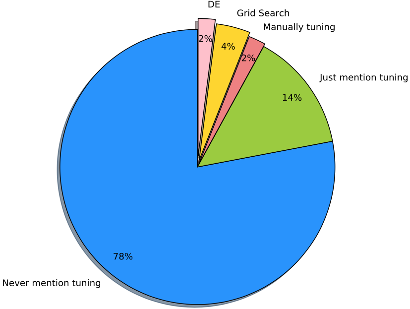 Grid search has been widely used as a parameter tuning method in software engineering community. However, by taking defect prediction task as a case study, we find that differential evolution as a parameter tuner performs if not better, at least as good as grid search but it runs 210X faster.